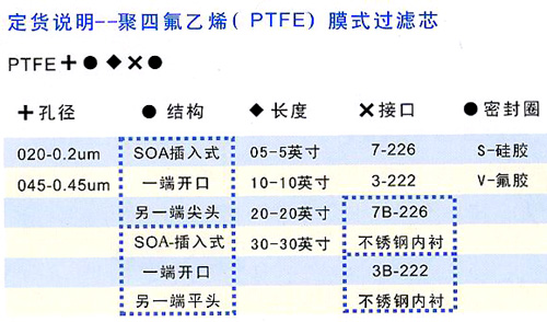 聚四氟乙烯(PTFE)膜式滤材,天然的疏水性,内芯、外罩、端盖,所有材质符合GMP要求。