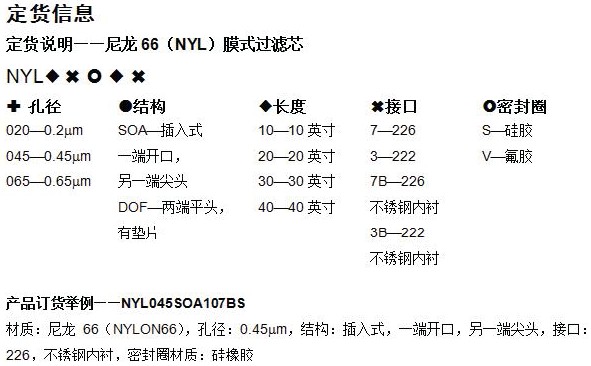 一端开口,插入式滤芯,端口具有双O型圈,插口为226和222形式。长度有5、10、20、30、40英寸。